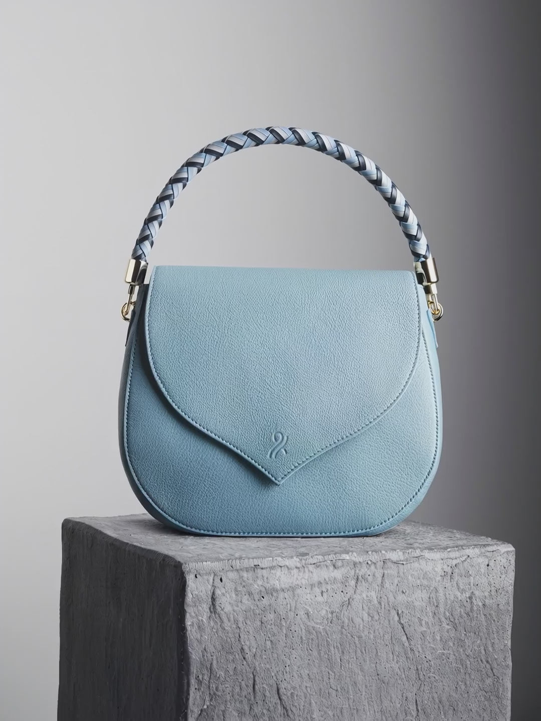 With its feminine silhouette and delicate blue aesthetic, the Celina Bag makes an elegant companion.